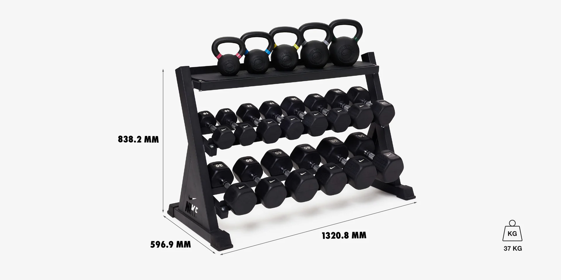 Le Dumbbell Storage Rack - NIKE STRENGTH combine organisation, solidité et efficacité pour votre espace d’entraînement.